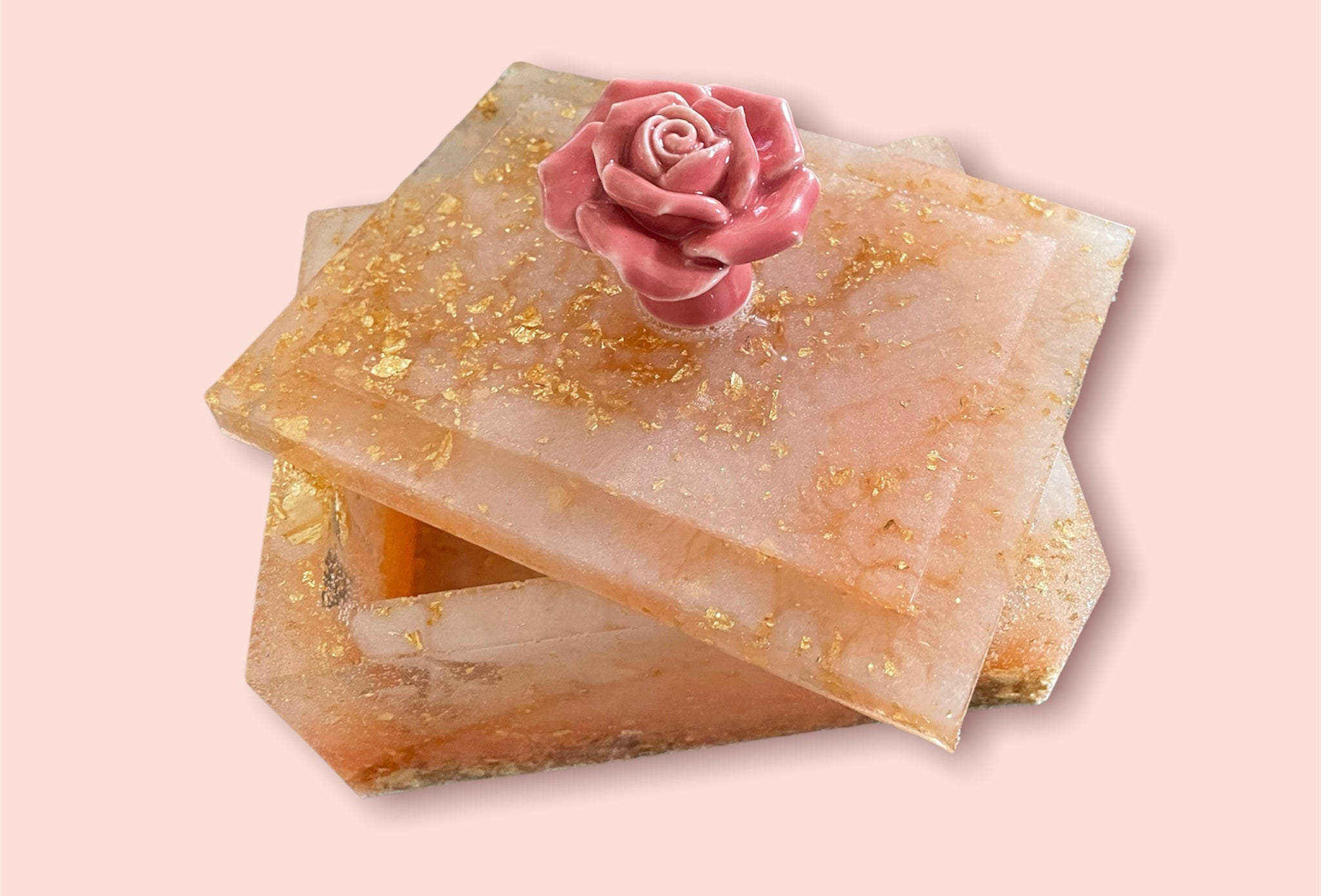 Beautiful pastel pink and metallic white with gold flakes! 💕🤍✨